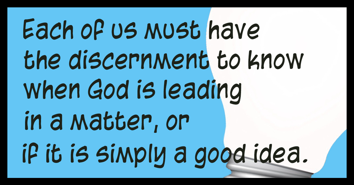 Each of us must have the discernment to know when God is leading in a matter, or if it is simply a good idea. There are so many things in which you and I can be involved, and the more successful you become, the greater the temptations to enter into things where God has not called you. Movers and shakers are especially prone to see all the opportunities.